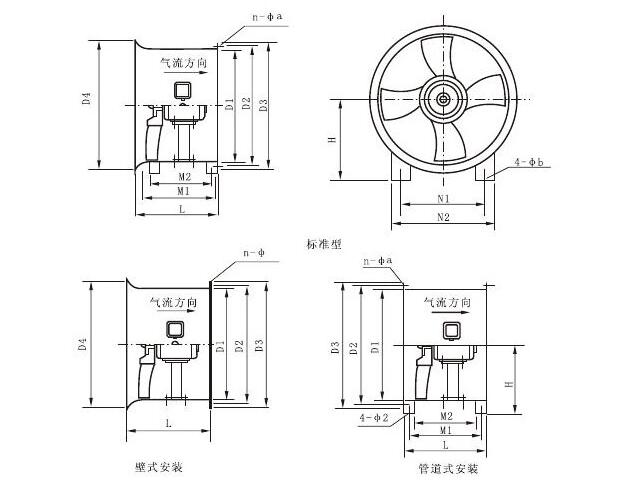 三、CDZ型低噪聲軸流風機外形及安裝尺寸