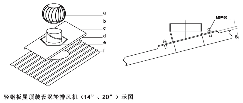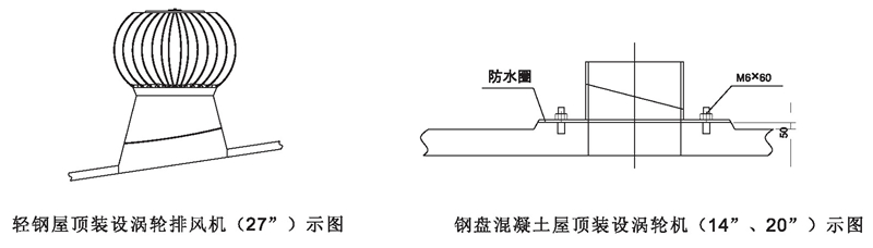 DWT-IV型(無電機(jī))屋頂渦輪排風(fēng)機(jī)屋面安裝示圖說明