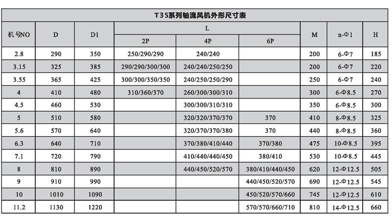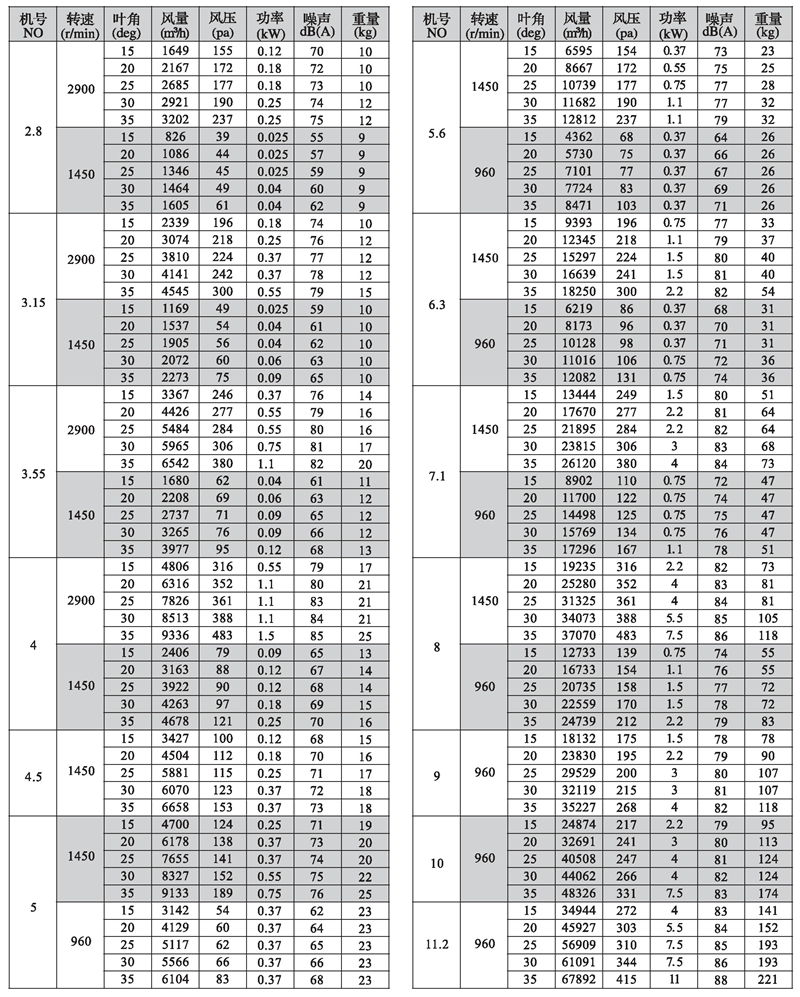 三、T35型風機性能參數表